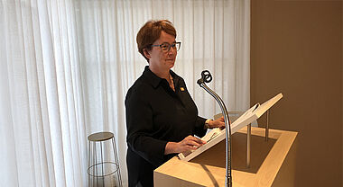 La doyenne Marie Arsenault en était à sa première présence à la Cérémonie et lors de son allocution, elle a tenu à rappeler que plus de 1200 étudiants et étudiantes en sciences de la santé fréquentent annuellement le laboratoire d’anatomie.